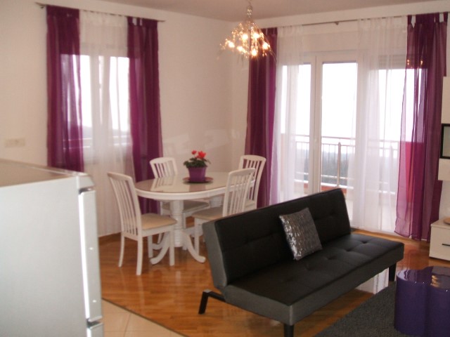 Es befindet sich am 1. Stock. Es beteht sich aus Wohnzimmer, Küche mit Essbereich, 3 Schlafzimmern, Badezimmer und Toilette. Es hat eigene Garage und Parkplatz. Neben Meer. www.therealestatecroatia.com...